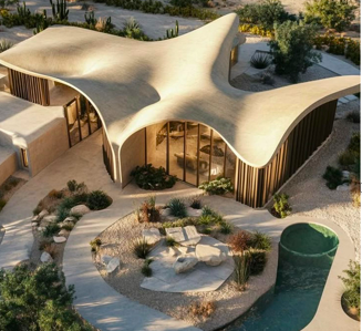 Architectural Harmony The buildings are not foreign forms, but extensions of the earth itself. Living roofs of green and moss become new horizons, sanctuaries for birds and insects. They breathe, absorbing the sun's heat and giving us cool shade. Every structure is born from this place and gives back to it, its very presence a form of preservation.